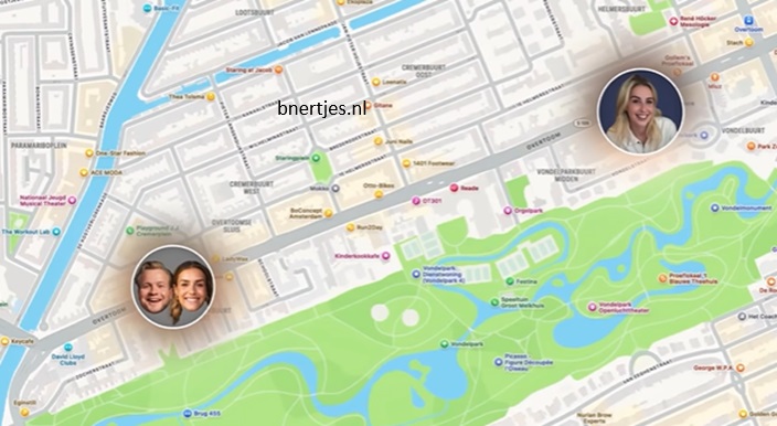 Het Youtubekanaal van Kalvijn had een challenge om BN’ers in het echt te spotten. BN’ers moesten op hun mobiel hun live locatie aanzetten, zodat zij konden zien waar de BN’er zich op dat moment bevindt. Dit om de BN’er te vinden in de challenge. En zo blijkt door live locatie op het mobiel van Iris Enthoven, dat ze dichtbij de Overtoom in Amsterdam woont. Denk je anoniem ergens te wonen, verraad je telefoon je.