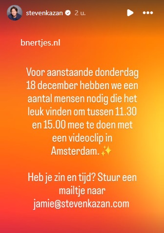 Steven Kazan doet een oproep. En vervolgens moet je mailen naar zijn ex-vriendin. Dus waarschijnlijk hebben ze toch nog contact met elkaar.