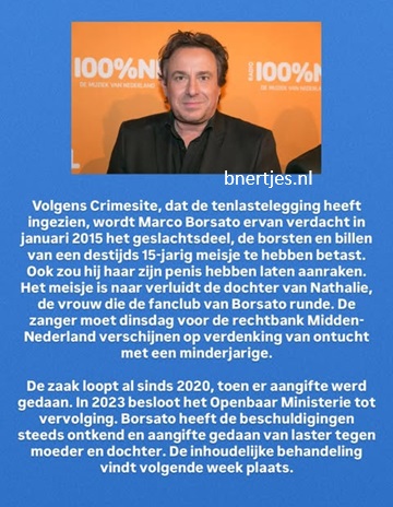Deze site had afgelopen donderdag een toneelvoorstelling bijgewoond waar de vrouw in speelde (voorletter met de letter J), waarin zij ooit via Yvonne Coldeweijer aangifte had gedaan wegens verkrachting door Danny de Munk in 2007. Danny de Munk werd toen ook, net als Marco Borsato, vrijgesproken. Maar de reden dat deze site dit schrijft, is omdat de site eigenaar na de voorstelling in de foyer van het theater met haar had gepraat. Gewoon even te zeggen dat de voorstelling leuk was. Maar deze site heeft 2 uur lang en daarna in de foyer gezien wie en hoe zij is. Ze is redelijk normaal. Maar op toneel deed ze de gekste dingen door gekke bekken te trekken enz. Maar opmerkelijk was dat ze geen moeite een pikant pakje aan te trekken en vaak te bukken, zodat je in haar decollete kon kijken. Dat moest natuurlijk van de regisseur natuurlijk. Maar je bepaalt toch zelf of je ermee akkoord gaat. En toen de site eigenaar na de voorstelling met haar ging praten, kon je wel aan het gepraat horen dat het een beetje sneu typje is. Dat Danny de Munk met haar wat heeft kunnen doen, om het zo te zeggen, is makkelijk bij haar. Ze accepteert alles. Maar het is wel zo’n persoon, die achteraf spijt heeft en dus ook later aangifte heeft gedaan bij hem via Yvonne Coldeweijer. Dus die persoon is makkelijk om het bed in te krijgen. Maar is wel zo’n persoon die er daarna mee zit. En daarom dus die aangifte later. De site had het totaal niet over die gebeurtenis. Puur alleen gepraat over de voorstelling.
